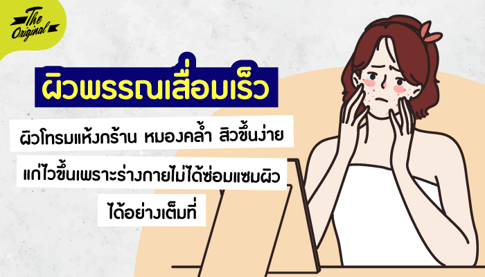 การพักผ่อนไม่พอทำให้ผิวสูญเสียความชุ่มชื้นเร็วขึ้น ผิวจึงดูแห้ง ขาดชีวิตชีวา แต่งหน้าไม่ติด