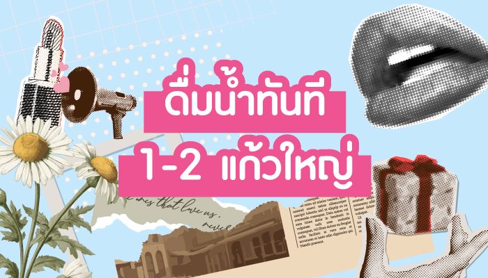 ดื่มน้ำเปล่าทันที 1–2 แก้วใหญ่ (ปลุกเซลล์ผิวจากความแห้งกร้าน)